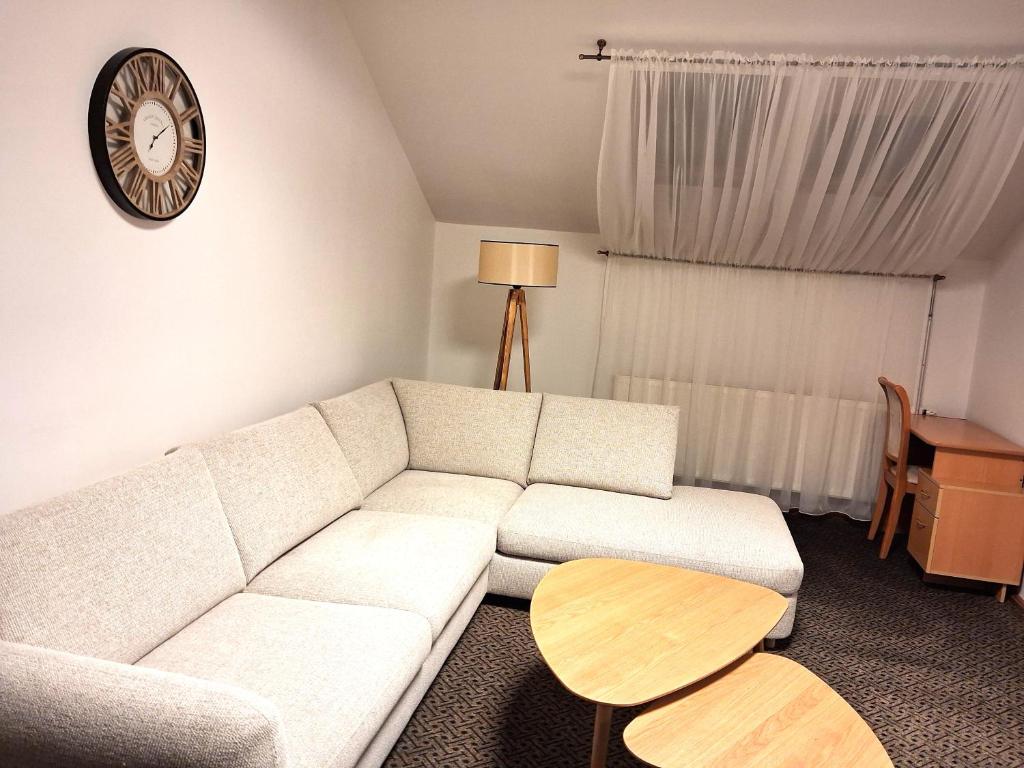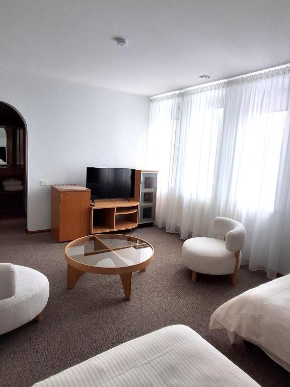 "Older hotel with old photos of the area in the hallways. One bedroom apartment had two nice leather couches and table and chairs, and nice touches like pot plants. The nice lady at reception let us check in a little early and breakfast had a nice range. Conveniently in walking distance of the railway station. Good value for money."